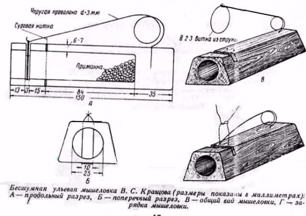 Щур, почувши принаду, залазить у велике отвір, що знаходиться в дерев’яному бруску. Нитка, натягнута зверху вниз, перегороджують їй шлях до ласощів і щур її перегризає. У цей момент звільнилася пружина миттєво піднімає металеву петлю вгору, душили звірка.