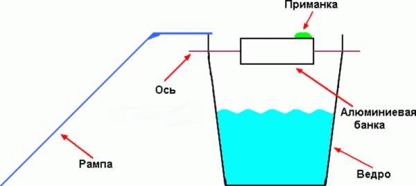 Як тільки гризун полізе до приманки, зафіксованої пляшки з боків, він звалиться з пластикової ємності у відро чи бочку, з якою не зможе вибратися назовні.