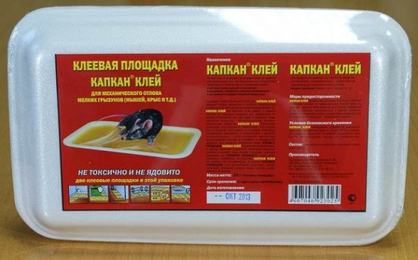 Крім клейових пасток, ефективний і спеціальний клей, який можна придбати в звичайних тюбиках і самостійно нанести на обрану поверхню. Зазвичай в якості підкладки використовується плоский матеріал, розміром 25х50 см, надійно прикріплений до підлоги. В іншому випадку щур, що потрапила в клей, перепачкает їм все приміщення, тягаючи підставу за собою.
