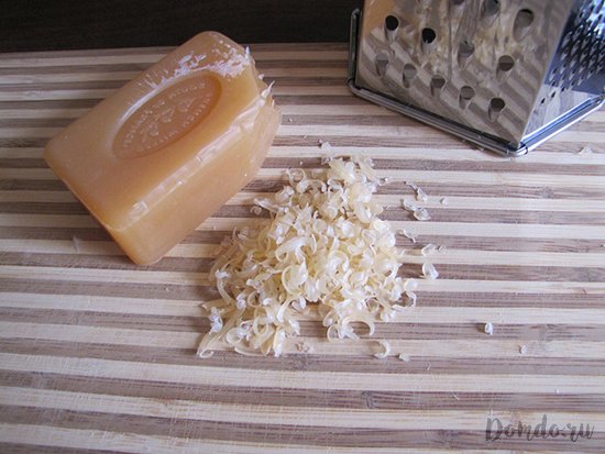 Також вам знадобиться каструля, в якій буде готуватися гель. Господарське мило потрібно натерти на тертці, висипати в киплячу воду і ретельно перемішувати до повного розчинення. Останній пункт дуже важливий: якість майбутнього кошти безпосередньо залежить від того, наскільки добре ви перемішали мило на стадії його приготування. Далі в каструлю потрібно висипати соду і знову ретельно перемішати розчин. Якщо сода повністю не розчиниться, потім вона буде залишати білясті сліди на вашому одязі.