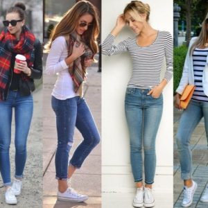 Отже, в гардеробі є білі кеди: з чим носити таке взуття, щоб виглядати стильно і сучасно? Насамперед, найпростіший наряд, який доповнить таке взуття – це джинси. Вузькі і широкі, драні і прикрашені стразами та вишивкою – будь-який варіант буде доречний. Але найбільш виграшно білі кеди будуть виглядати з модними джинсами скінні – вузькими, обтягують фігуру. Також стильний ансамбль складуть так звані хуліганки (джинси з нижніми вилогами) і білими високими кедами.
