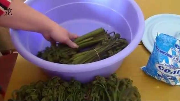 Можна засолити папороть більш простим способом, попередньо вимочивши його у воді 2-3 дні. Потім заготовку покласти в поліетиленовий пакет з великою кількістю солі і відправити на зберігання в морозилку.