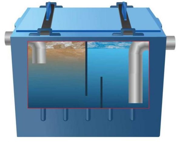 - Установка жировловлювача. На мийці кріплять конструкцію. Вона фільтрує відходи, що прискорюють засмічення труб.