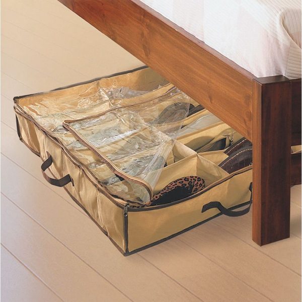 - Спеціальні тканинні органайзери. Їх зручно зберігати в непомітних місцях, наприклад, під ліжком.