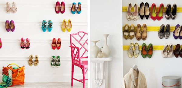 Чудово, якщо в квартирі є гардеробна. Крім звичайних полиць для взуття, тут можна обладнати карнизи з гачками для літнього взуття і мішків з зимової. Можна поставити взуттєву стійку і розвішати улюблені туфельки або кеди.
