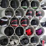 Організувати зберігання взуття будинку можна різними способами. Взуття не обов’язково прибирати в коробки і мішечки, якщо у вас є спеціальний шафа, в якому зроблені окремі полички для кожної пари. Це зручно — не потрібно довго шукати потрібну річ. У такий шафа добре ставити літні і туфлі туфлі, черевики та чобітки без високих халяв. Звичайно, вони поміщаються в шафу тільки чистими і сухими. Чоботи ж підвішують на вішалках або надягають на спеціальні колодки для зберігання. Замість колодок, можна використовувати звичайні скляні пляшки. Варіант самого компактного зберігання — підвісні полиці у вигляді вертикального органайзера, які кріплять на двері шафи або комори.