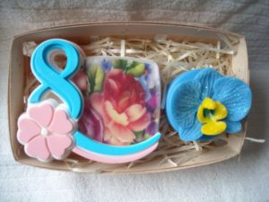 Косметичні набори. На полицях магазинів напередодні свята можна знайти безліч косметичних наборів різної спрямованості – для догляду за волоссям, шкірою тіла, комплекти кремів, набори для макіяжу та ще багато всього іншого. Чоловік, який зовсім в цьому нічого не розуміє, заплутається – купить набір, який буде найбільш красиво упакований. На це і розраховують більшість виробників дешевих косметичних наборів, що випускають до свята тематично оформлені комплекти. Якщо немає точного поняття, яким конкретно косметичним маячнею користується дівчина, краще подарувати незвичайне мило ручної роботи. Зараз можна практично скрізь знайти оригінальні засоби найрізноманітніших форм і ароматів.