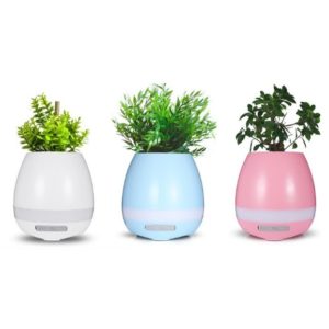 Музичний горщик для квітів. Це оригінальний винахід, яке принесло безліч нових корисних функцій в звичайний квітковий горщик. Ємність володіє вбудованим динаміком, який автоматично включається при дотику до горщика і видає ніжну мелодію. Крім того, можна підключити через Блютус свою улюблену музику і використовувати горщик як музичну колонку. В темряві включається підсвічування, розташована внизу горщика. Якщо до нього доторкнутися вночі, то лампочки заблимають в такт вихідної музиці. Дивовижна оригінальна річ, яка на перший погляд виглядає, як звичайний горщик для квітів. Презент можна доповнити живою квіткою, встановивши його в ємність.