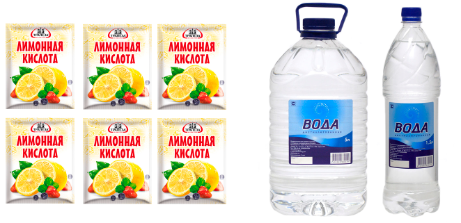 - Для створення розчину при сильному забрудненні рекомендується використовувати на 10 літрів води 1 кілограм лимонної кислоти. Якщо забруднення середньої тяжкості, кількість лимонної кислоти на 10 літрів можна скоротити до 800 грам;
