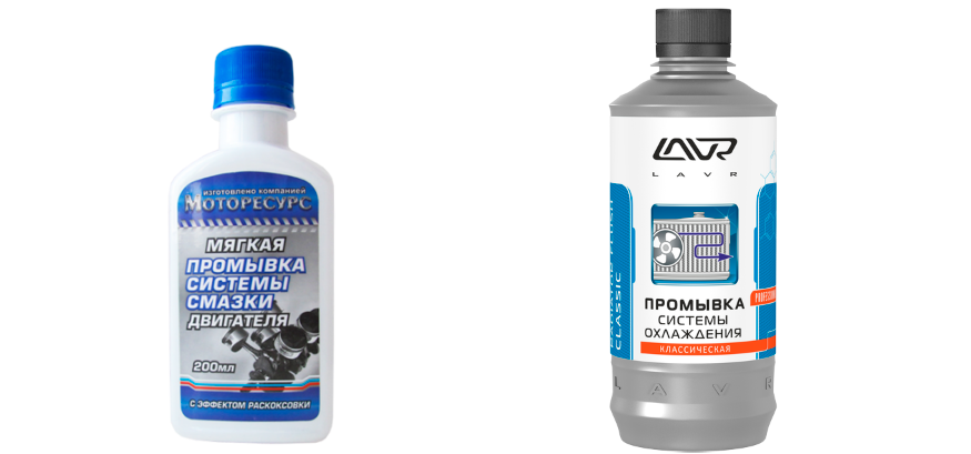 В сервісах по ремонту автомобілів промивка двигуна проводиться спеціальними засобами, які можна купити в спеціалізованих на витратних матеріалах для двигуна магазинах. Подібних засобів безліч, але найбільш відомі з них Лавр і Моторесурс. Вартість спеціалізованих засобів для промивання системи охолодження двигуна вкрай висока, і багато водії використовують для очищення системи від стороннього «сміття» звичайну дистильовану воду. Цей метод дешевше, але і значно менш ефективний, оскільки вода не бореться з накипом, а лише вичищається скупчилися мікрочастинки.