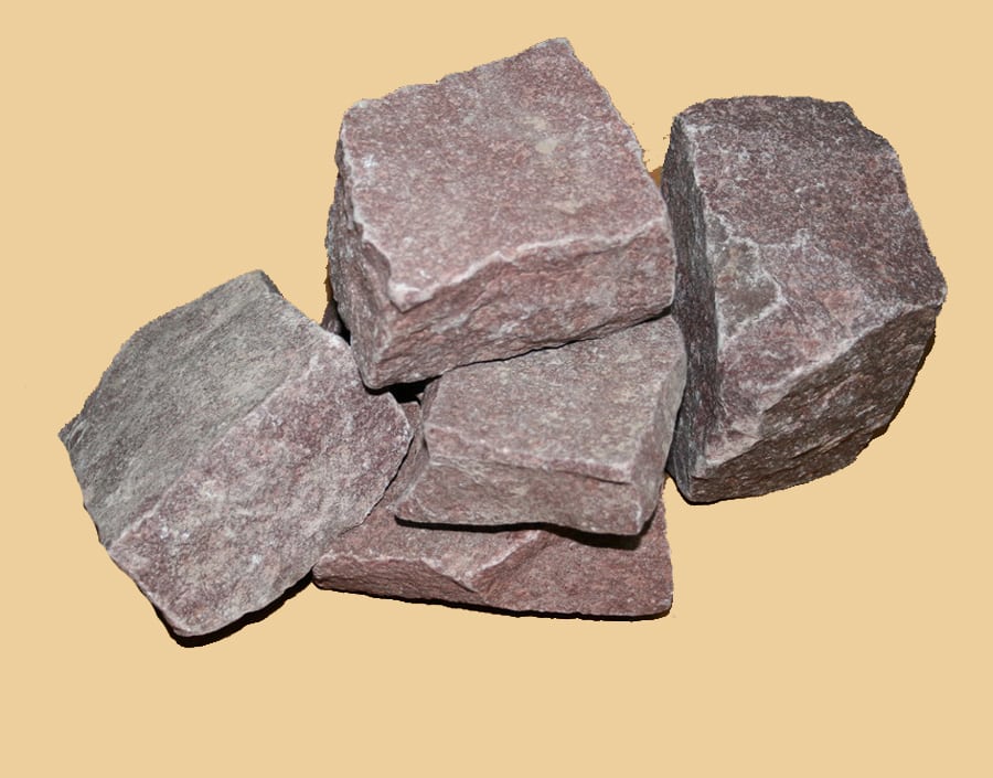 Малиновий кварцит – пурпурного кольору, може перенести підвищення температурного режиму до 2500°С, є дуже щільним і теплоємності. Краще вибрати оброблені породи, так як за часом загострені частини будуть розпадатися на крихти і засмічувати все навколишнє.