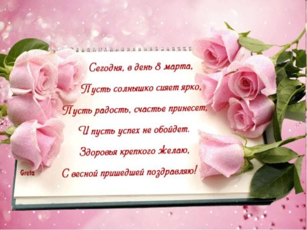 Наступна категорія привітань складається з красивих картинок з 8 березня-з квітами і побажаннями коханій дружині. В ній знайде відповідну листівку кожен, хто шукає романтичний знак уваги для дівчини або дружини.