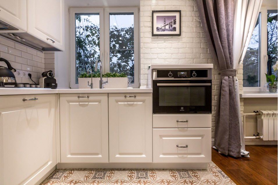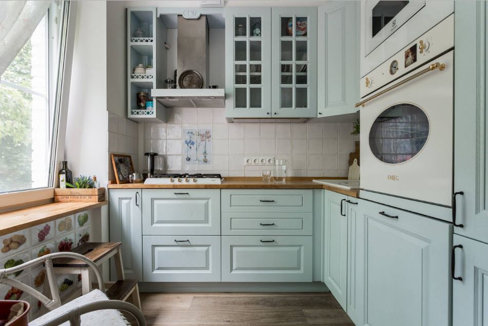 На рівні підвіконня можна додати додаткову поверхню, а сам підвіконня використовувати для різних кухонних електроприладів.