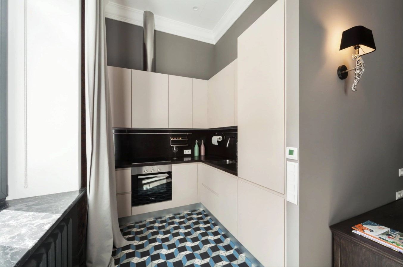 Цей колір широко застосовується в оформленні кухні. Він візуально збільшує простір і добре поєднується з фурнітурою золотого кольору, дерева або натурального каменю. До бежевого легко підібрати плитку або шпалери.