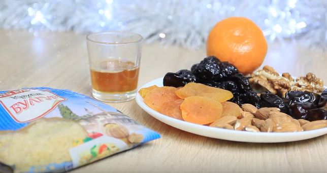 З горіхів ми взяли волоські і мигдаль, а сухофрукти складаються з кураги, фініків і чорносливу.