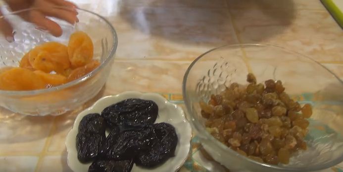 2. Сухофрукти добре промиваємо і заливаємо окропом на 20 хвилин, щоб вони розм’якшилися. Потім можна буде злити воду.