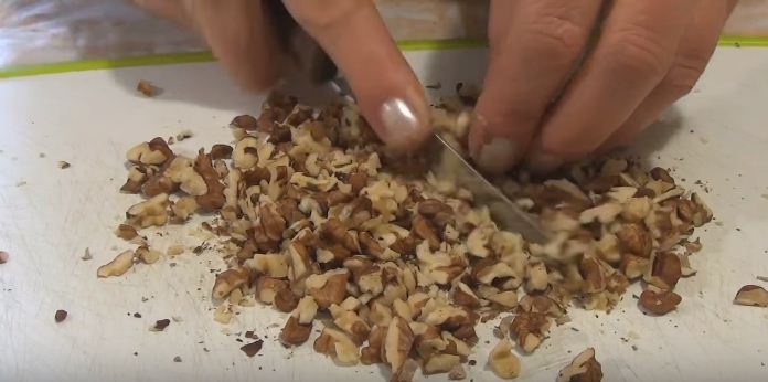 3. А поки займемося горіхами. Їх треба злегка подрібнюємо за допомогою ножа. Так їх смак буде відчуватися.