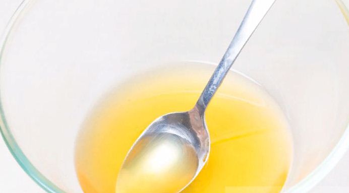 4. Мед розводимо шістьма столовими ложками теплої води.