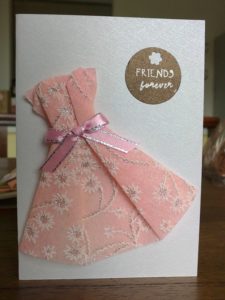 Ажурне миле плаття готове. Залишається розмістити його на листівці і закріпити.