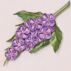 - атласна стрічка зеленого та фіолетового кольору для виготовлення трояндочок і пелюсток;