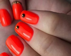Короткі нігті універсальні тим, що їх можна покрити будь-яким відтінком червоного і прикрасити. Якщо покриття підбирається в тон сукні, то тоді колір повинен гармоніювати з нарядом.