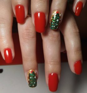 Виділяти безіменний палець в нейл-арте актуально вже кілька років. Тому при створенні червоного манікюру можна скористатися цією ідеєю. Прикрасити ніготь можна по-різному: