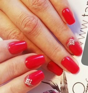 Серед дівчат останнім часом найбільш популярний червоний манікюр зі стразами. Такий яскравий дизайн привертає увагу оточуючих, додає жіночність і чарівність. Але не варто думати, що він підійде тільки для святкових заходів – існує маса варіацій, серед яких зустрічаються ідеї для повсякденного стилю, які підходять як зовсім юним, так і жінкам солідного віку.