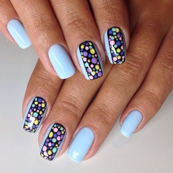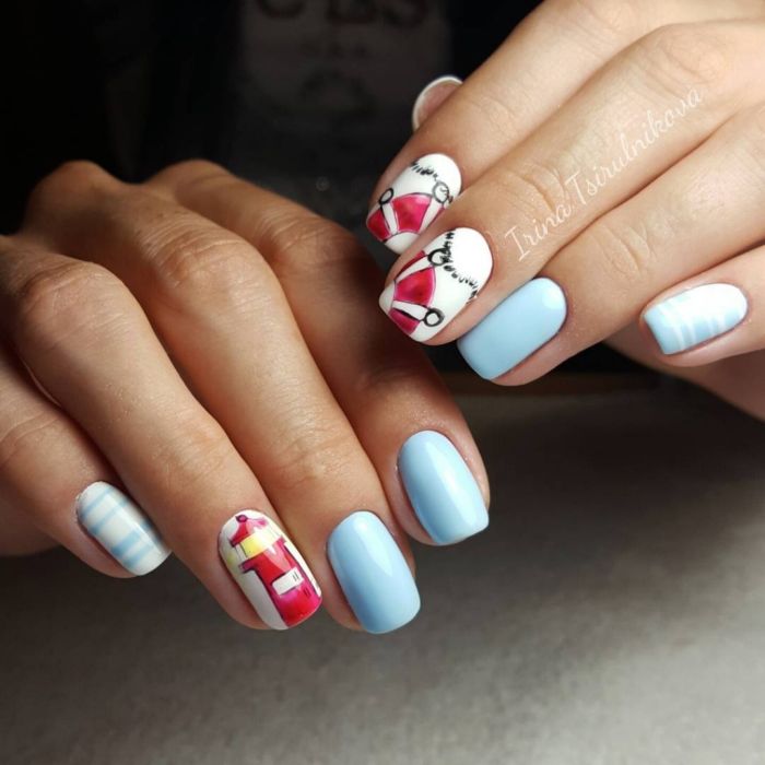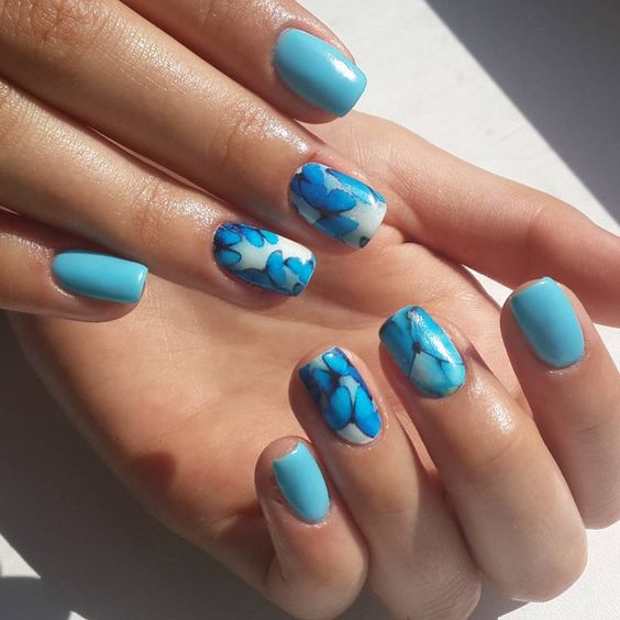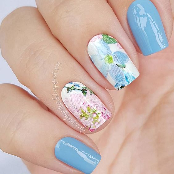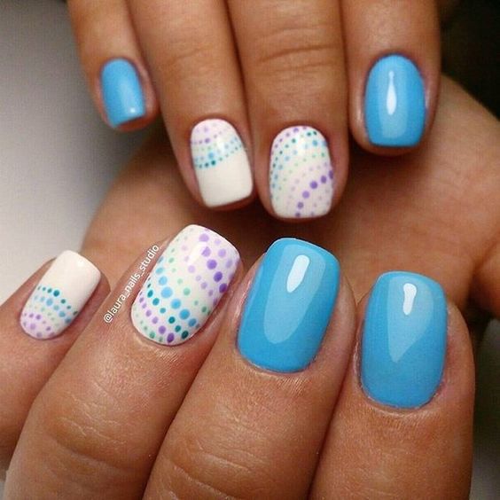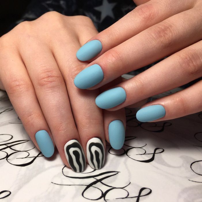 Ну і звичайно ж, малюнок на нігтики – це завжди актуально. Незалежно від того, буде це невеликий візерунок або більш складна задумка – виглядає це завжди привабливо. До того ж, блакитний колір відмінно варіант для створення фону на нігтики.