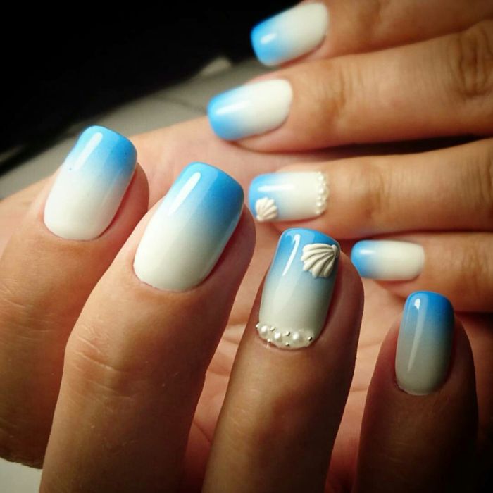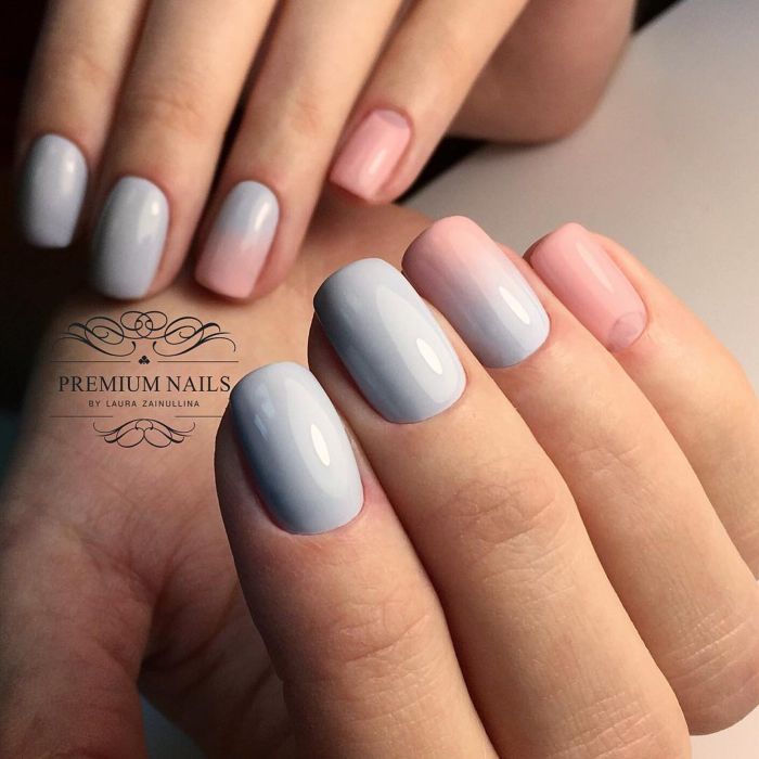 Ефект омбре або ж градієнт досить давно став популярним, тому утримує лідируючі позиції і в 2018 році. Це не дивно, адже такий манікюр можна зробити як легким, майже непомітним, так і більш яскравим, річним. Все залежить від того, які поєднувати відтінки. Наприклад, комбінація світло-блакитного кольору з бежевим завжди виглядає максимально природно. У свою чергу, більш насичені блакитні і рожеві тони відмінно підходять для створення яскравого дизайну.