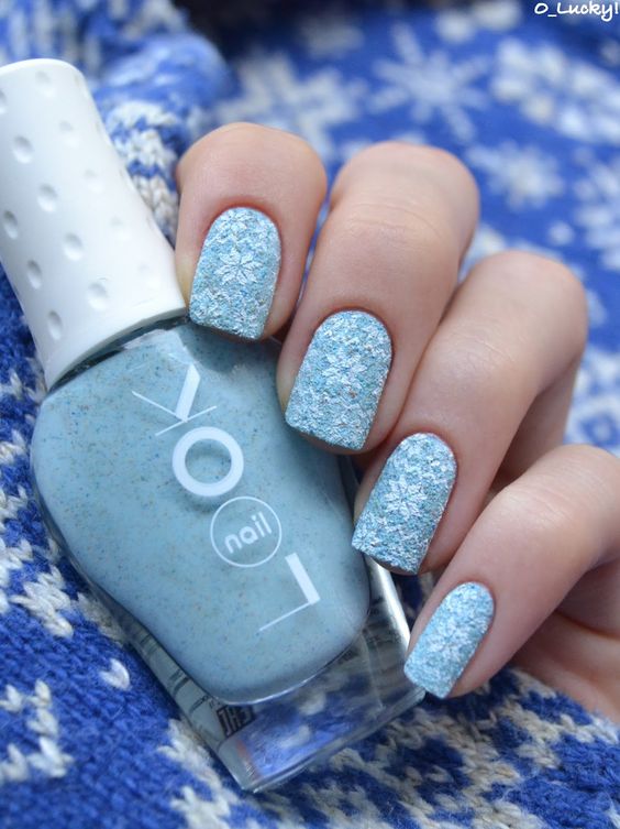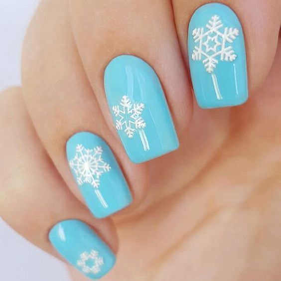 Найчастіше блакитний колір у багатьох асоціюється з літнім дизайном нігтів. Але тим не менш – це відмінний варіант для створення стильного, оригінального новорічного малюнка. Красиві сніжинки, ялинки, подарунки з стрічками – це лише мала частина того, що можна зобразити на нігтях в честь наближається Нового року.