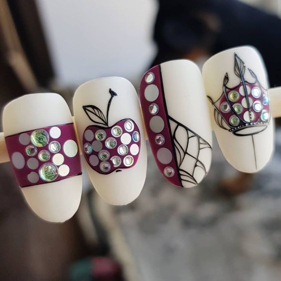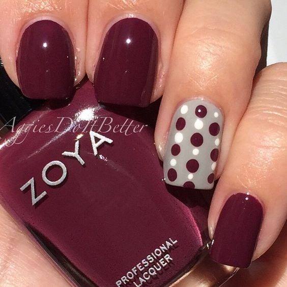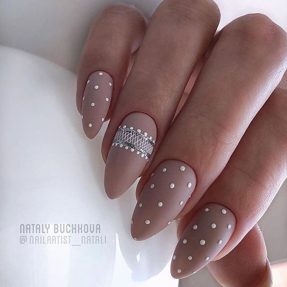 Популярний манікюр в крапочку відмінно вписується в осінньо-зимовий період, додаючи вам нотку гарного настрою. Односкладовий дизайн з горошком в поєднанні з матовою базою інтенсивних темних кольорів підійде як в будні, так і у святкові вечірки. Щоб підкреслити вашу індивідуальність та красу, до такого манікюру просто необхідно додати трошки стразів і бусинок, яскравого гліттера, який буде нагадувати осінні крапельки. Проводите експерименти, не зупиняючись, вибирайте дизайн нігтів, який буде радувати вас, так як ви просто гідні бути неповторною і неповторною.