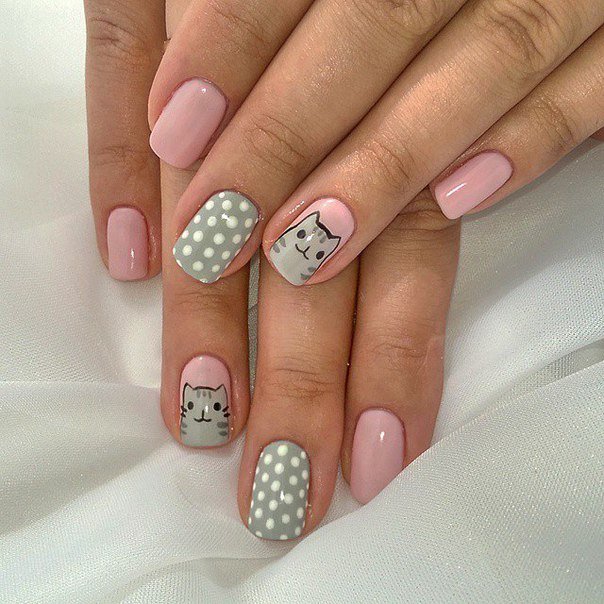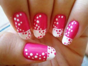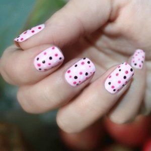 Впевненим у собі жінкам, безумовно, припаде до смаку злегка епатажний манікюр червоного кольору в білий горошок, романтичні ж натури по достоїнству оцінять ніжне поєднання пастельних відтінків з акуратними точками середнього розміру.