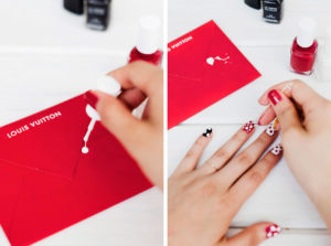 Рада! Для зручності вибрані відтінки слід капнути на картонку або фольгу, вмочити в лак паличку і акуратно поставити рівні точки на нігтьову пластину.