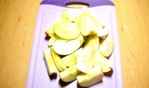 3. Яблука я беру зелені і кисленькі на смак. Вирізаємо серцевину, видаляємо насіння і розрізаємо на невеликі часточки.
