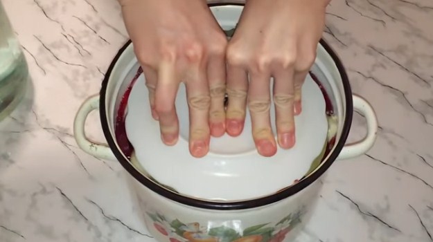 9. Зверху ставимо вантаж, у мене 3-літровий бутель наповнений водою. Можна поставити каструльку меншого розміру або гирю, за бажанням.