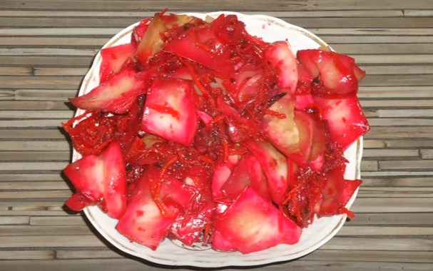 Ще хочу порекомендувати рецепт приготування пелюстки без буряка (буряка). Хоча маринад майже ідентичний, але закуска виходить на смак зовсім інший, надзвичайно смачною! Обов’язково спробуйте, тим більше це швидкий рецепт і вже через добу подаємо мариновану ласунку на стіл.