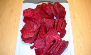 2. Нарізаємо буряк пластинками, не дуже тонко, приблизно в 5 мм завтовшки.