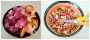 Потім слід підготувати цибульне лушпиння. Краще всього, якщо вона буде різного кольору (від червоного і жовтого ріпчастої цибулі). Її необхідно подрібнити, чим менше будуть шматочки, тим дрібніше вийде малюнок.