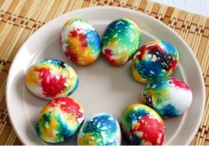 Виконані мармурові яйця на Великдень, таким чином, виходять дуже яскравими, але не варто сильно захоплюватися фарбуванням лаком, так як це все ж речовина хімічного походження.