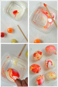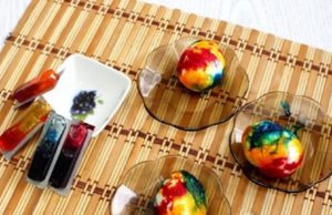 Гарний мармуровий малюнок на Великдень можна отримати не тільки використовуючи зеленку і лушпиння цибулі, але і за допомогою харчового барвника.
