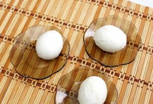 Насамперед необхідно витягти з холодильника яйця, вони повинні бути кімнатної температури, інакше під час варіння від різкої зміни температури шкаралупа може лопнути.