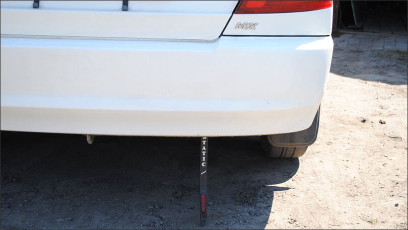 Щоб на корпусі автомобіля не виникало статичної електрики, його необхідно заземлити. Для цього можна придбати в автомобільному магазині спеціальну антистатичну смужку, яку потрібно повісити на кузов машини. Ця смужка являє собою шматок гуми або подібного матеріалу, всередині якого мається дріт, графіт або алюмінієва пудра. Виготовити таку смужку можна і самостійно при наявності необхідних матеріалів.