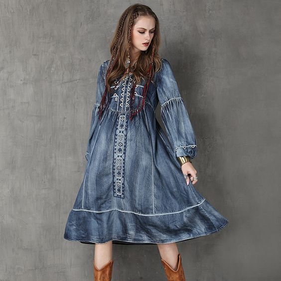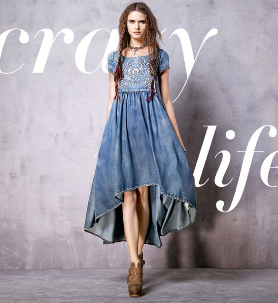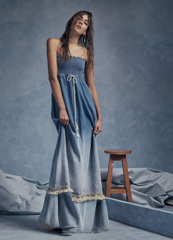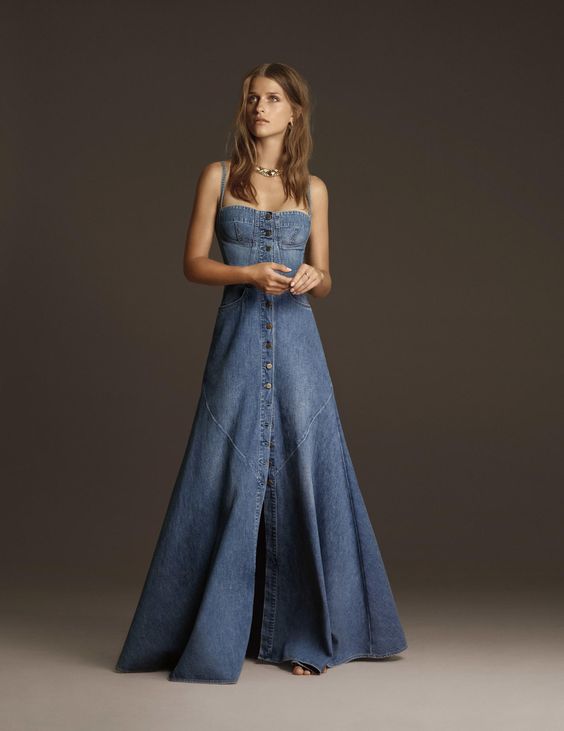 Завдяки сучасному телебаченню, багато жінок спостерігають за тим, у що одягаються знамениті героїні поп-сцен і Голлівуду. Саме тому в повсякденне життя активно просочуються джинсові сукні максимальної довжини. Довге джинсове плаття виглядає досить привабливо на жінок високого зросту і стрункої статури. Багато подовжені джинсові моделі підійдуть для урочистого заходу або якогось світського виходу.