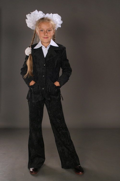 Багато хто до цих пір вважають, що шкільна форма для дівчаток – це виключно сукні та спідниці. Насправді це не так і в 2018 році було представлено досить велику різноманітність одягу. Наприклад, штани або брючні костюми для школи – це відмінне рішення. Така форма максимально комфортна і без неї просто не обійтися в холодну пору року.