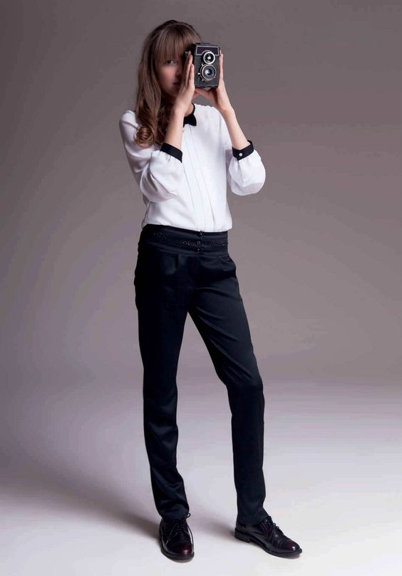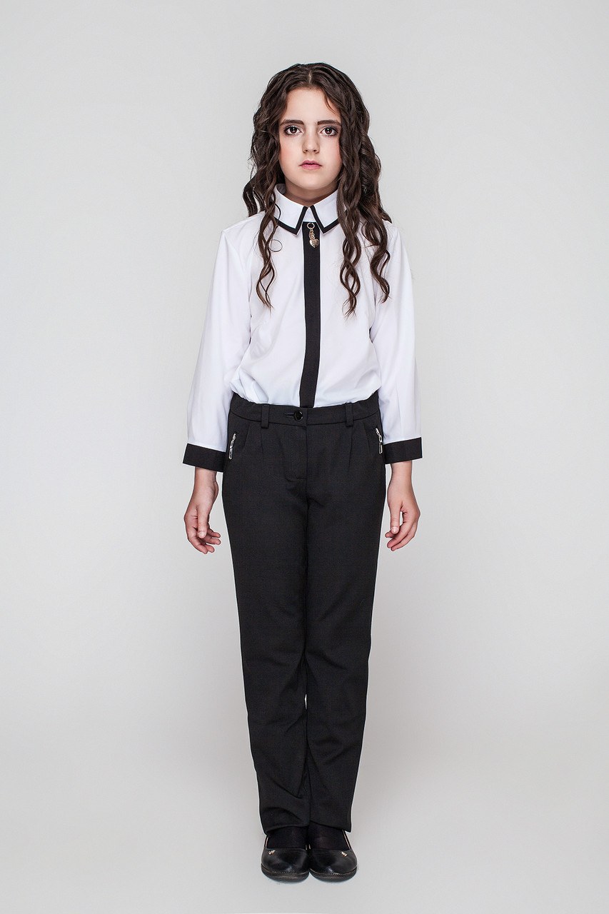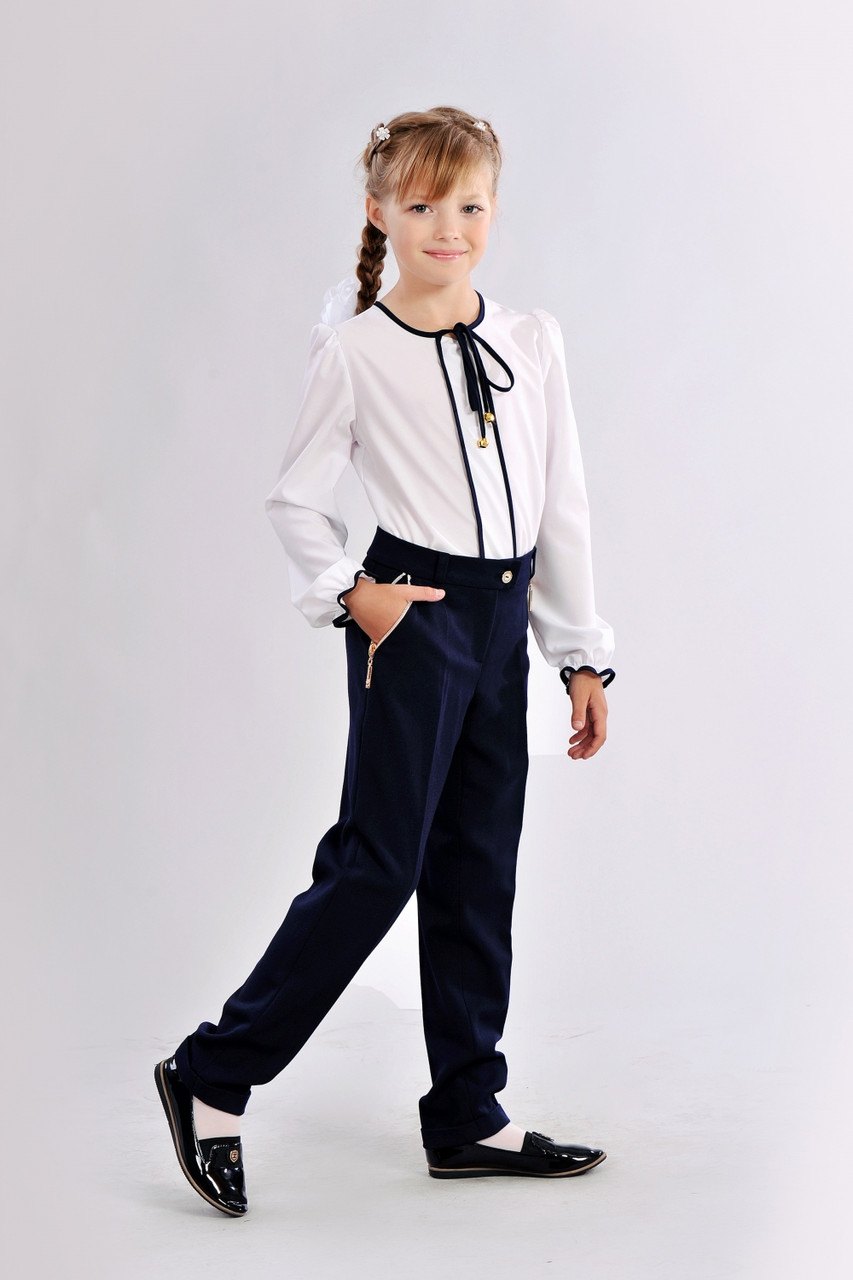 Найчастіше брюки мають строгий фасон. Насправді це добре, адже можна вибрати більш цікаву блузу. Приміром, з бантом, вишивкою або не помітним принтом. Поєднуючи такі предмети гардеробу, ви отримаєте відповідний для шкільних буднів образ.