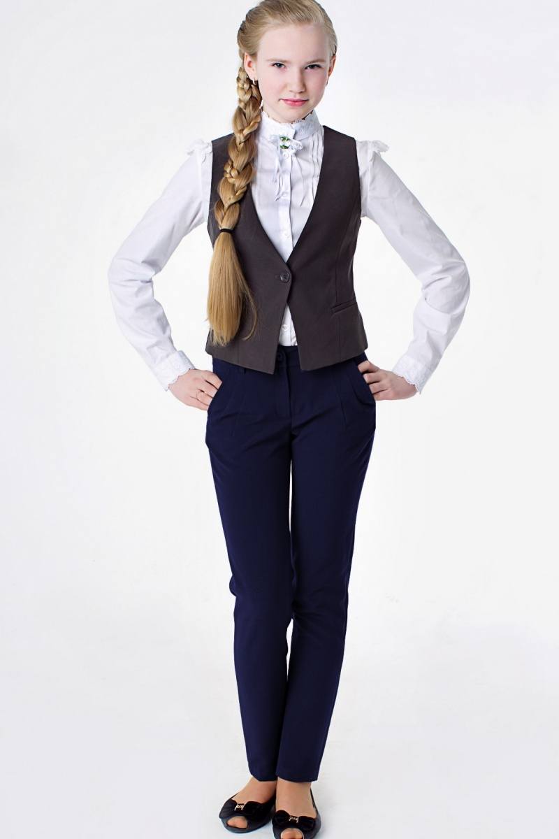 Найбільшою популярністю серед дівчаток-підлітків користуються брюки із завищеною талією. Вони можуть бути прямого крою або ж звуженими. Вибирати варто той варіант, який найкраще сидить на фігурі і більше подобається. Незалежно від того, які брюки ви виберете, поєднувати їх варто з блузами в нейтральних відтінках або в пастельній кольоровій гамі. Також варто підібрати відповідний по стилю жакет. Він не повинен бути занадто укороченим або подовженим. Найбільш оптимальний варіант – жакет класичного крою в тон штанів.
