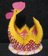Модульне орігамі – це один з кращих варіантів виконання курочки на Великдень. Таку саморобку можна подарувати, віднести в дитячий сад або залишити для прикраси власного святкового столу.