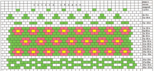 - 5-й р.: іде чергування по 2 білих М і 2 зелених М;