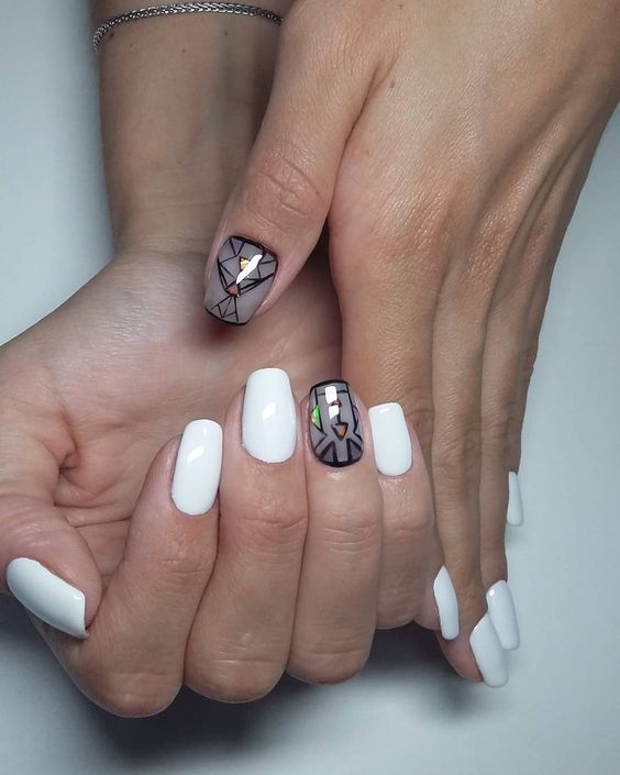 Складно посперечатися з твердженням, що геометричний дизайн вважається головним хітом 2018 року. Це дійсно так, адже саме такі малюнки максимально універсальні і підходять для будь-якого випадку і сезону. Його обирають в якості доповнення до легкого пастельному покриттю, а також як акцент для святкового, насиченого дизайну. Крім того, геометрія чудово виглядає як на коротких, так і довгих нігтики.