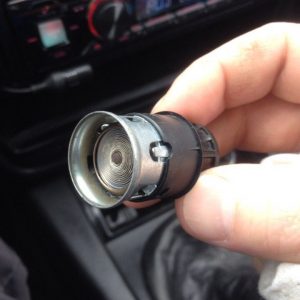 Якщо ці дії не дали позитивного ефекту, вийміть прикурювач з посадкового місця. Коли він погано піддається, можна взяти плоскогубці. Тільки при затиску обов’язково використовуйте ганчір’яну тканину, щоб не подряпати корпус і не псувати його зовнішній вигляд. Повільно тягніть за металевий обід, щоб не порвати дроти живлення.Зверніть увагу: У продажу можна знайти, як оригінальні, так і «китайські» прикурювачі.